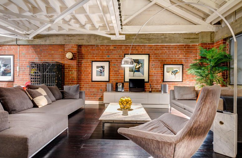This penthouse has been lavishly remodeled with wooden floors and copper doors. It is fully furnished with pinball machines and a pool table. The building itself is a masterpiece and stars oak timber paneling and Cararra marble throughout. View full listing here.