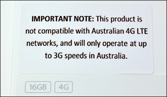One immediate piece of bad news - not unexpected - was immediately confirmed by a slip of paper in the box stating that the new iPad's 4G/LTE feature was not compatible with frequencies Australian cellphone networks.