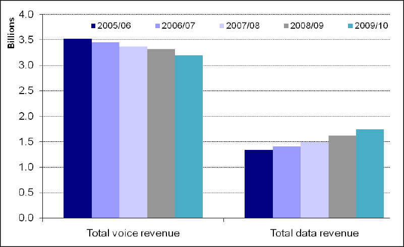 ABOVE: Total Retail Revenue by Voice and Data, Fixed and Mobile (click to zoom).