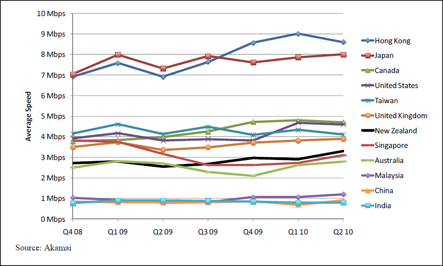 The report also summarises a previously reported survey by Akamai, which found slow broadband performance in many countries (not surprising, given Akamai is, in part, pitching its traffic optimisation service), with New Zealand on a par with Australia and Singapore but slower than the US and UK.