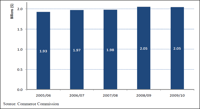 Elsewhere, the report canvasses some familiar territory, noting a lull in telecommunications investment (not a big surprise given 2010 represents something of a gap year between three big projects - Vodafone, Telecom and 2degrees respective network builds and upgrade, and the start of the urban and rural Crown broadband intiatives).