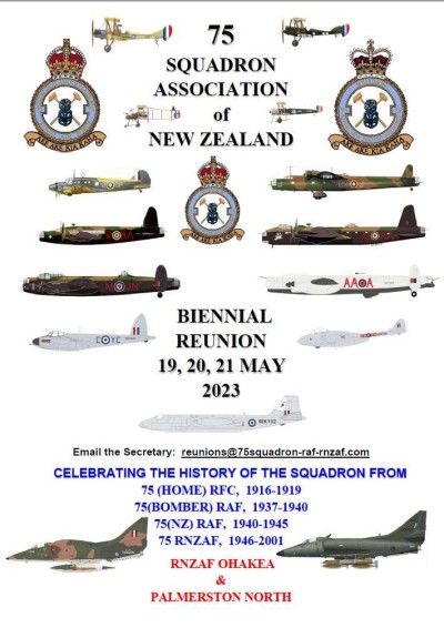 The 75 Squadron Association of New Zealand, which comprises pilots and other crew in the combat wing of the RNZAF, is holding its next reunion at Palmerston North/Ohakea from May