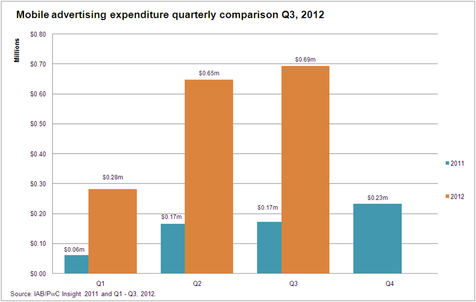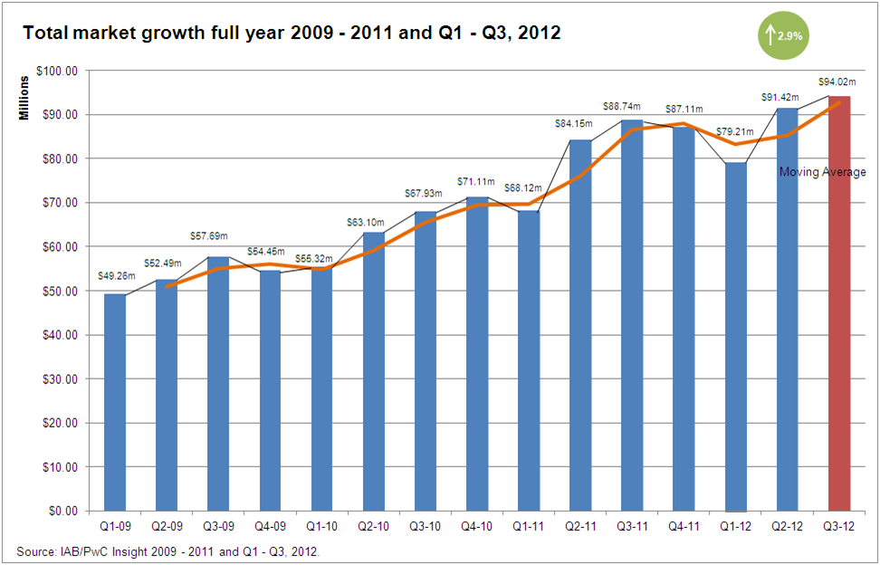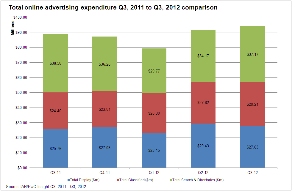 Total online advertising spend to date for 2012 is $265 million, PwC says.