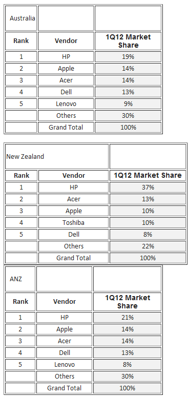 PC shipments into the New Zealand market grew 10% to 200,000 in the first quarter of 2012, says market researcher IDC.