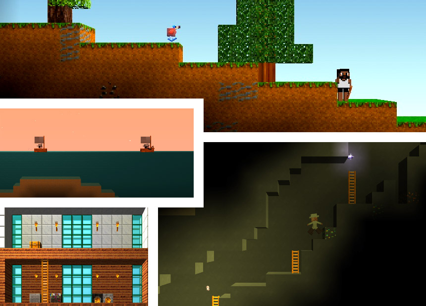 Scenes from The Blockheads which can be played by one or two people (with voice chat). A version supporting three or more players is in the works.