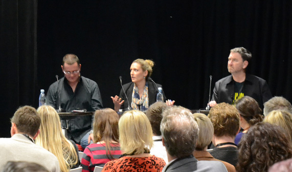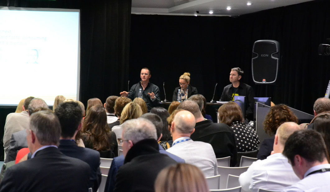 Locals at The Project Revolution (L-R): Tuanz CEO Paul Brislen, incoming Manawatu Standard digital editor Greer McDonald, MC Russell Brown.