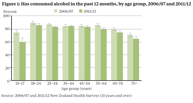 The Ministry of Health also is very clear that the tables above understate the drop in hazardous drinking if we're interested in it as a proportion of the overall population. They write: