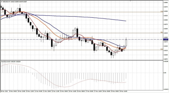 上周五(11月29日)纽元兑美元在商品货币企稳的带动下,迎来了一波反弹的行情,中期基本面支撑纽元企稳。消息方面,上周五公布的新西兰10月营建许可月率下滑0.6%,差于前值的上升1.4%和预期值的1.7%,不过并不能表现新西兰经济出现反转,因此对汇价的影响非常有限。欧元区方面,上周五,欧盟统计公布的初步数据显示,欧元区10月失业人数大幅下降,带动整体失业率回落,对欧元形成支撑。与此同时,同日公布的欧元区11月通胀率有所回升,尽管仍远低于欧洲央行的目标水平,显示出欧元区经济复苏的动能正在恢复,进一步支撑欧元走势。数据显示,欧元区10月失业率降至12.1%,为2011年2月以来首次下滑,市场此前预期为持平于9月12.2%的纪录高位;统计局表示,欧元区10月失业人数减少6.1万,创2011年4月以来最大降幅,主要受法国失业人数减少4.1万的影响。不过,欧元区仍有1929.8万人失业,较上年同期增加61.5万。此外,欧元区11月CPI初值年率上升0.9%,预期上升0.8%,前值上升0.7%。另一方面,国际评级机构标普已于周五将荷兰AAA顶级评级调降一档至AA+,但这可能只是一个象征性姿态而已。标普的行动可能表明,荷兰已经陷入糟糕的平衡状态,值得警惕。美国方面,上周五,美联储公布的数据显示,美国11月18日当周货币供给M1转而增加239亿美元,但同期M2继续减少,11月28日当周外国央行持有美国国债的增幅则继续扩大。数据显示,美国11月18日当周货币供给M1增加239亿美元,前值减少341亿美元;11月18日当周货币供给M2减少40亿美元,前值减少249亿美元。此外,美国11月28日当周外国央行持有美国国债增加88.37亿美元,前值增加180亿美元。