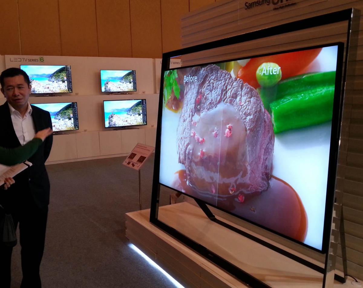 ABOVE: Samsung demos the 85S9, its 85-inch Ultra High Definition TV.