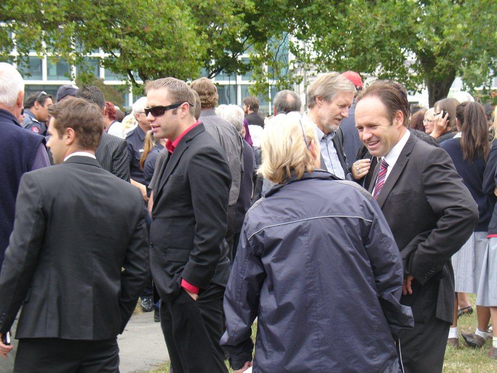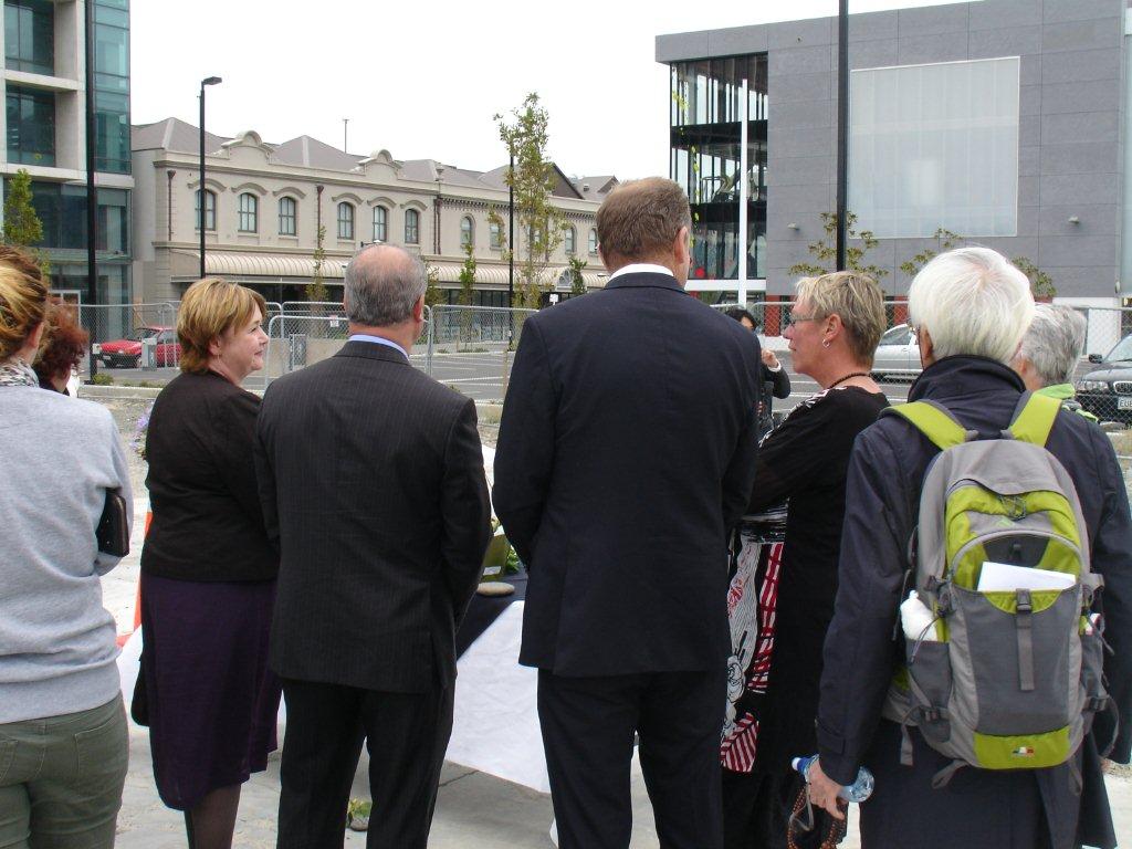 Earthquake Recovery Minister Gerry Brownlee attended but left immediately after the service. As did Canterbury Earthquake Recovery Authority head Roger Sutton, who was heading for yet another public meeting in the eastern suburbs to talk about aspects of the recovery.