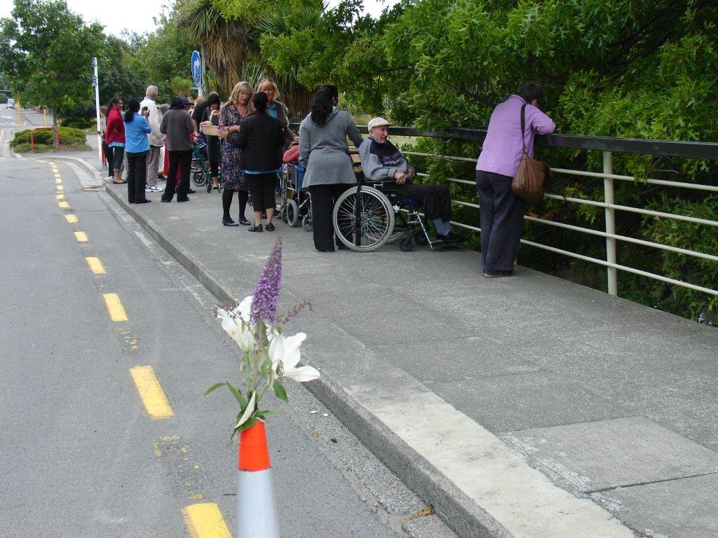 Other groups held small services overlooking the Avon River on an overcast and slightly cooler day, similar to the day of the big quake.