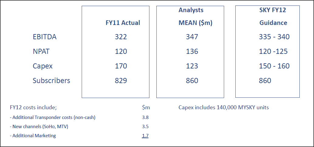 The company said total subscriber numbers had increased to 829,000 and it expected to meet the market expectation of 860,000 by the end of the year - with growth strong in the higher yielding (if costly to deploy) MySky.
