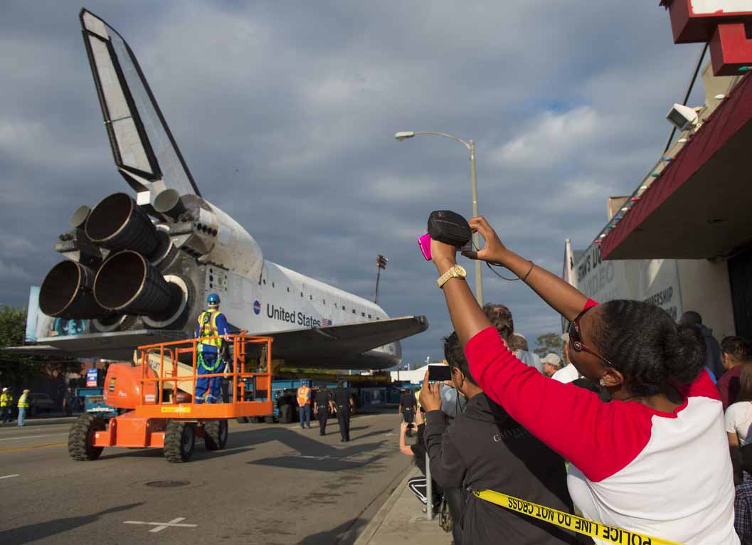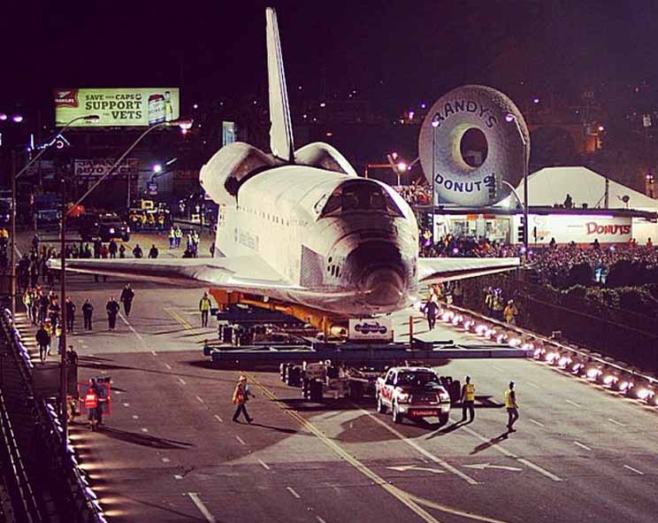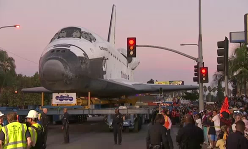 Space Shuttle crawls through LA streets (PHOTOS)