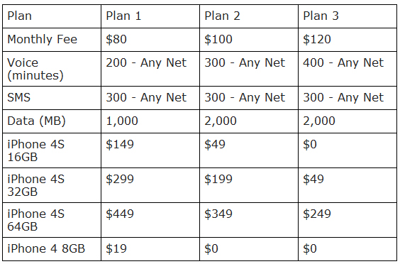 The telco - which has never before officially carried the iPhone - has also beaten Vodafone to the punch in announcing contract plan pricing (see table below).
