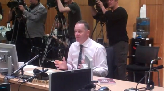 FACE-OFF: The PM during his July select committee stoush with Kim Dotcom. The government was able to pass the GCSB and TICS Bills as ACT and UnitedFuture ignored arguments from privacy advocates and liberterians, and industry concerns the two spy bills would be impractical and expensive to implement.