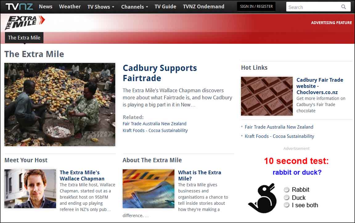 TVNZ tweaks Cadbury advertising page after claims it looks like news