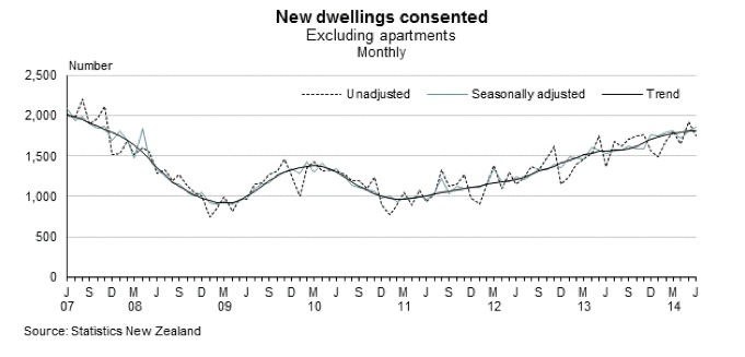 "The June building consents data show a continued lift in house-building demand," Christina Leung, an economist at ASB, said in a note. "Today's result indicates the earthquake rebuild in Canterbury is firmly on track. Along with stronger house building demand in Auckland and improving non-residential building investment, we expect construction growth will continue to lead the New Zealand economy over the next couple of years."