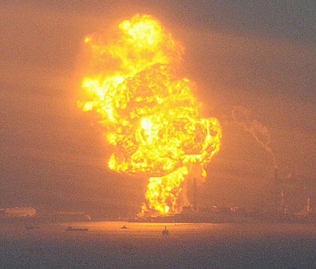 An oil refinery fire in Chiba, north of Tokyo (pictured), was raging out of control, reported NHK.