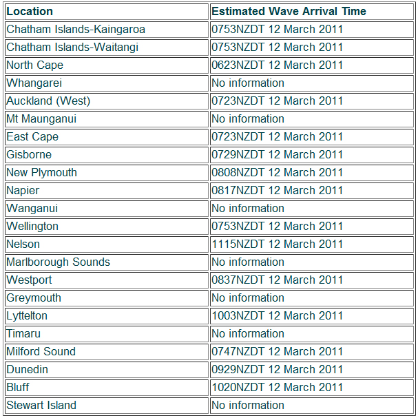 UPDATE 10.30pm: Below are possible NZ tsunami arrival times, according to the US government website weather.gov.
