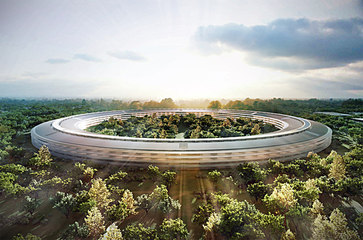 Designed by Norman Foster's Foster+Partners, it offers 2.8 million square feet (260,000 square metres) of space for 14,200 Apple staff (all told, Apple directly employs around 73,000).