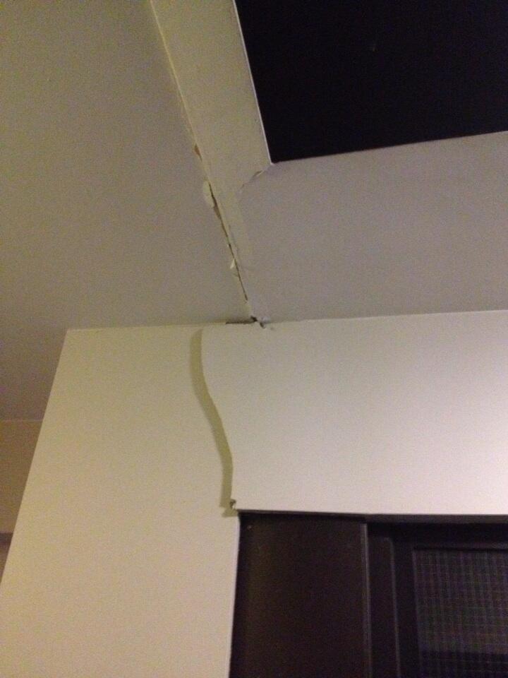 A crack in the ceiling on the 17th floor of the James Cook Grand Chancellor in the Wellington CBD hotel (@Kalena)