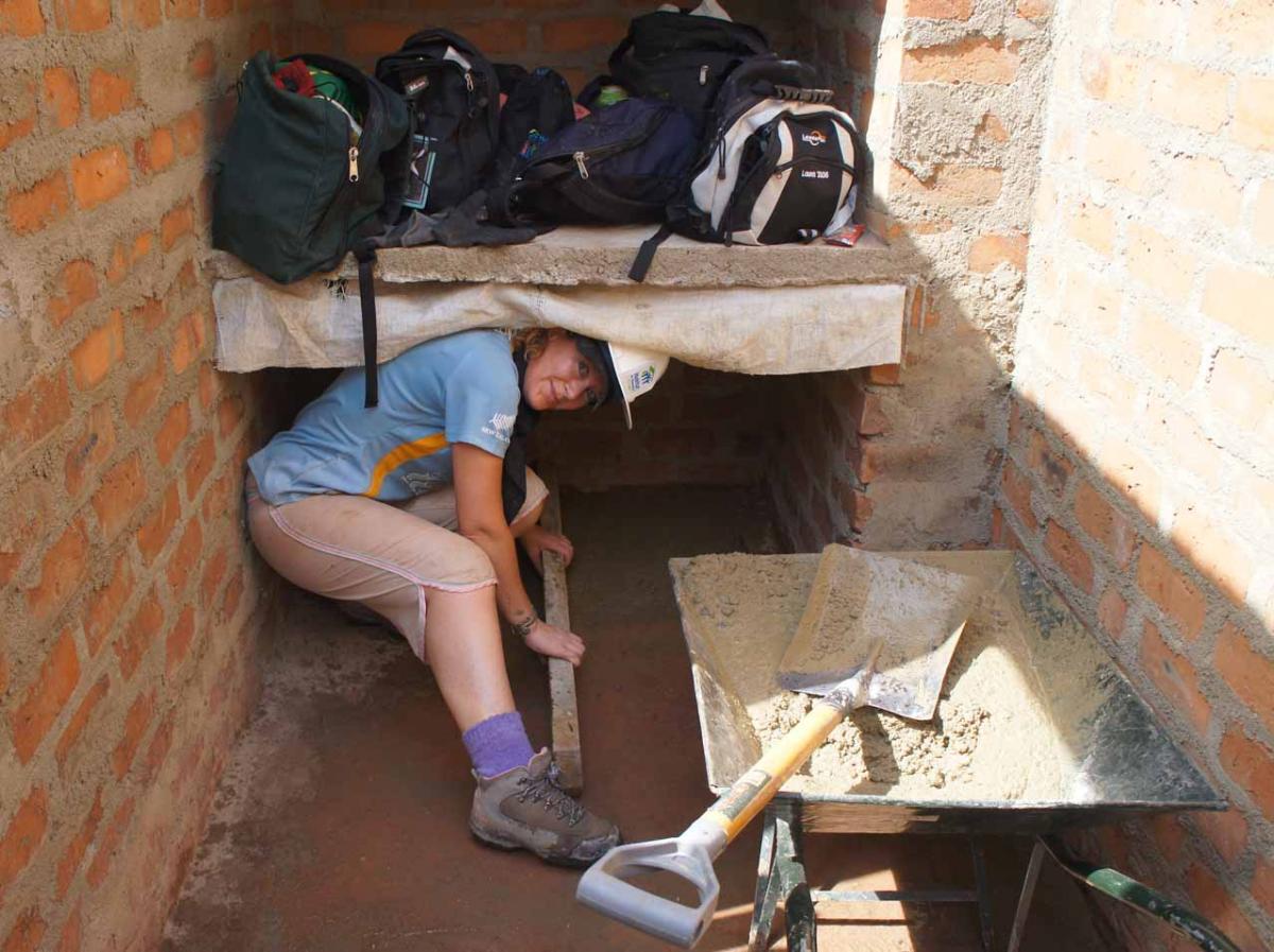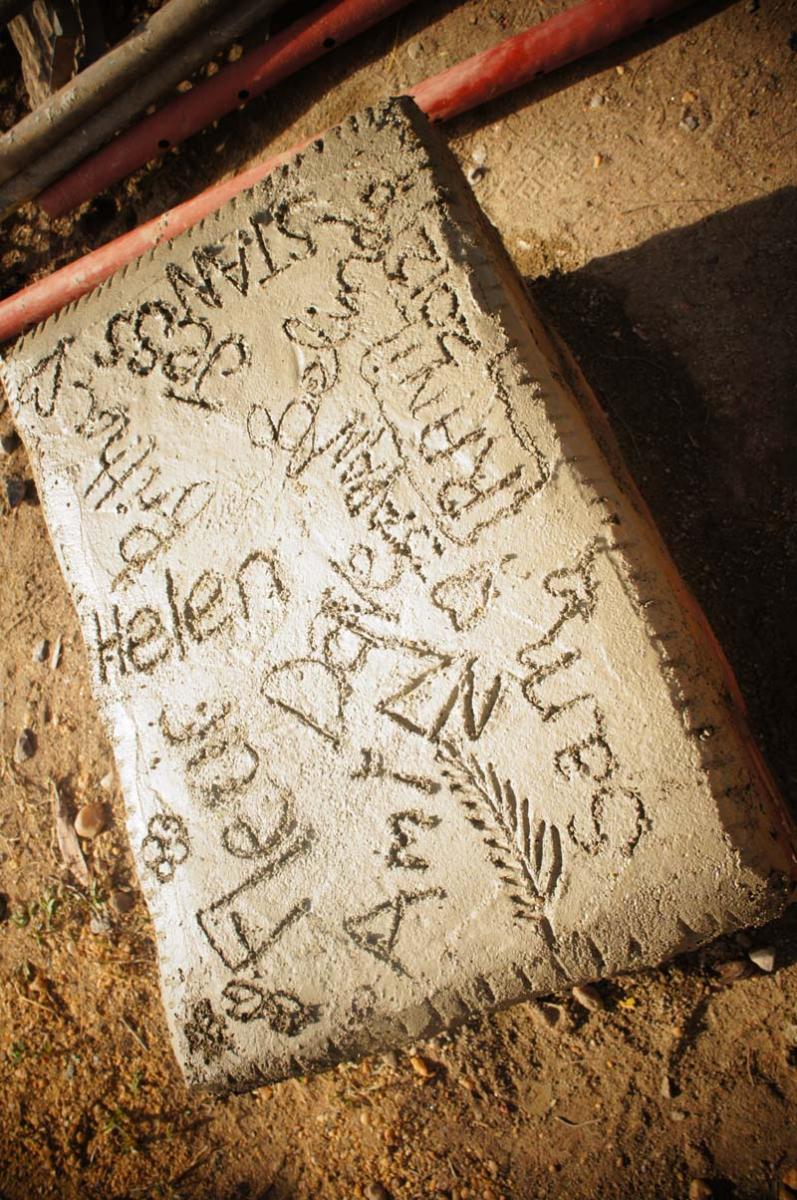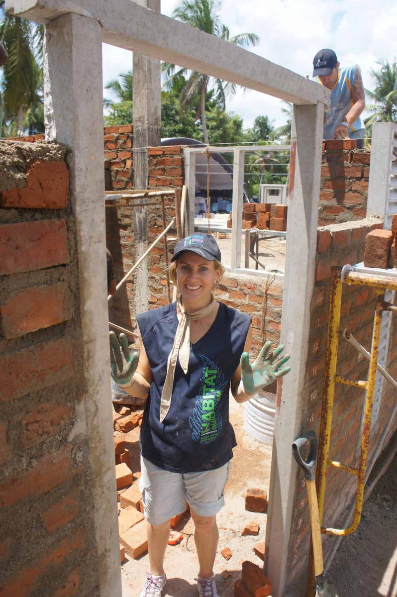So in 40-degree heat, we donned hard hats, gloves and sunscreen and scooped shovels of cement into sand to make mortar by hand.