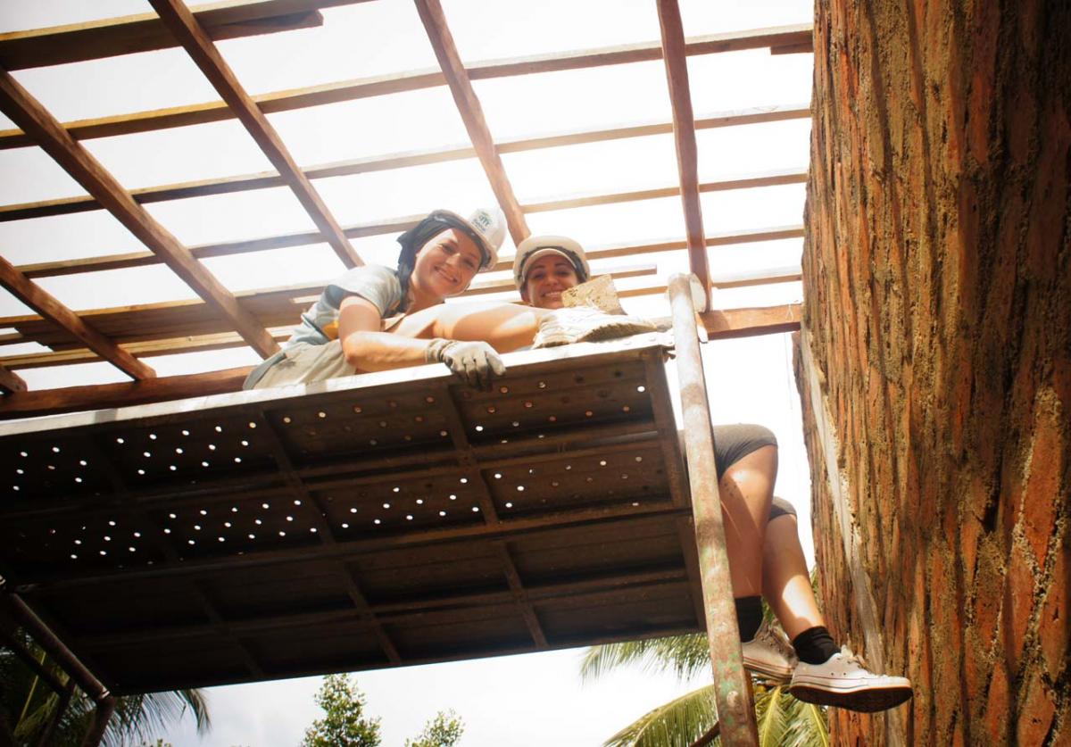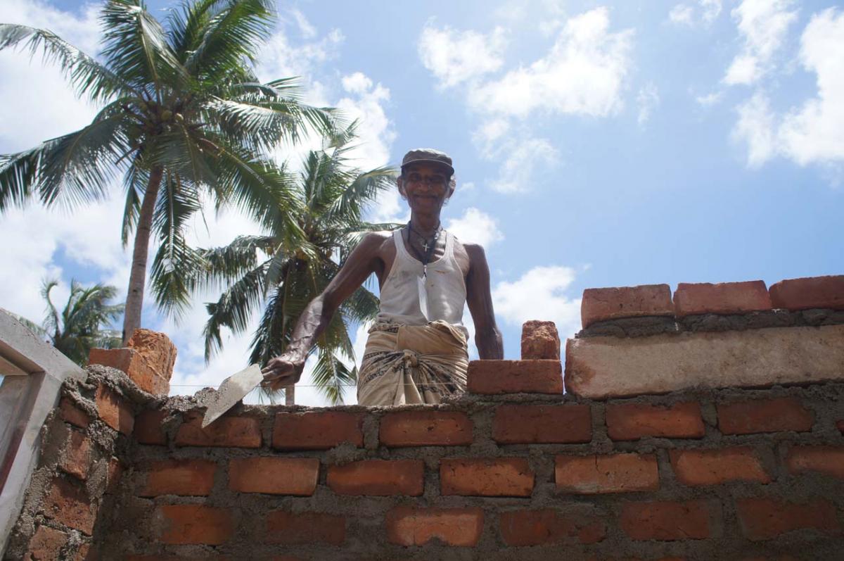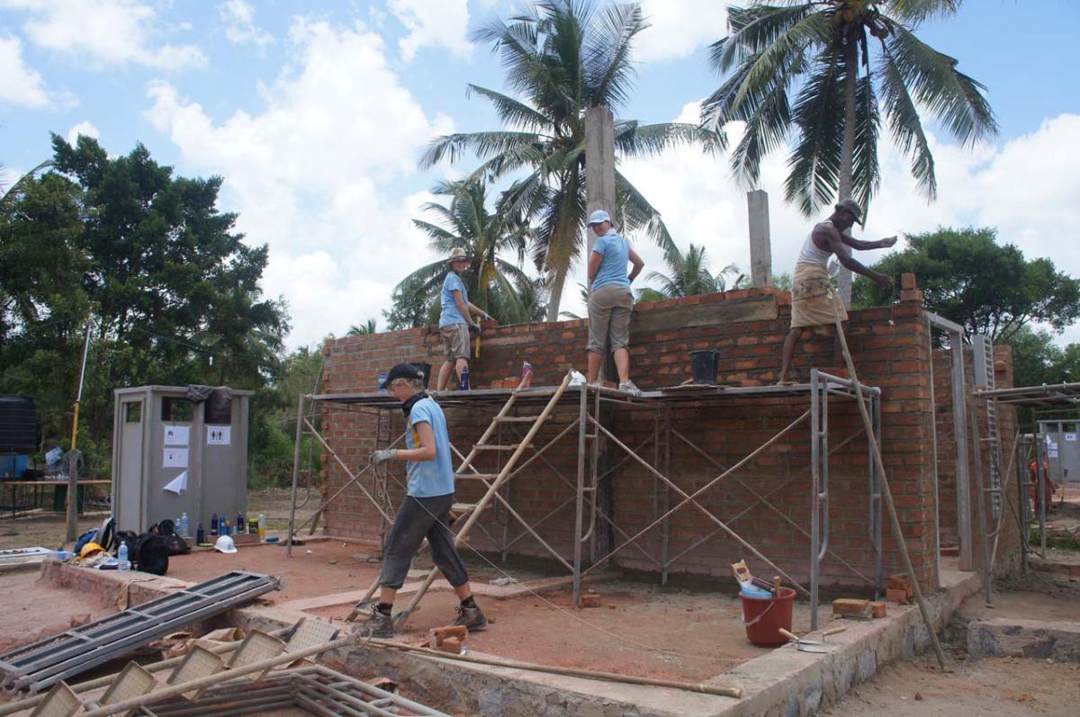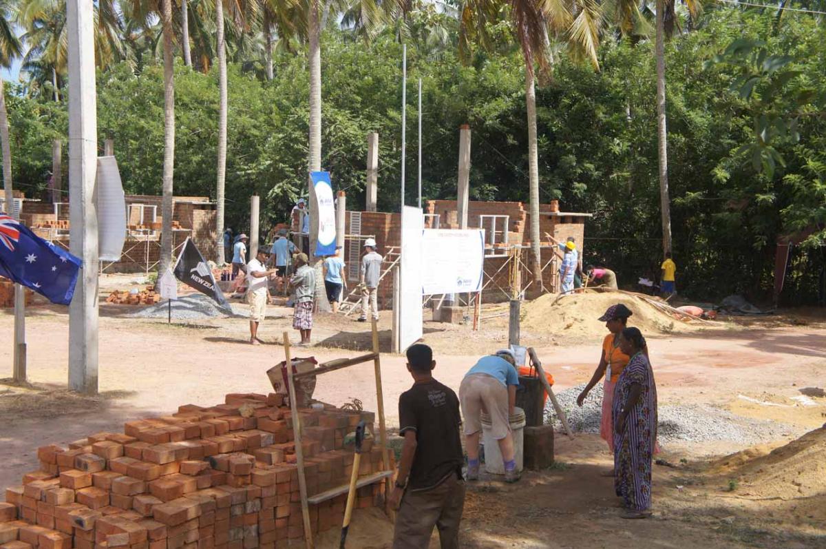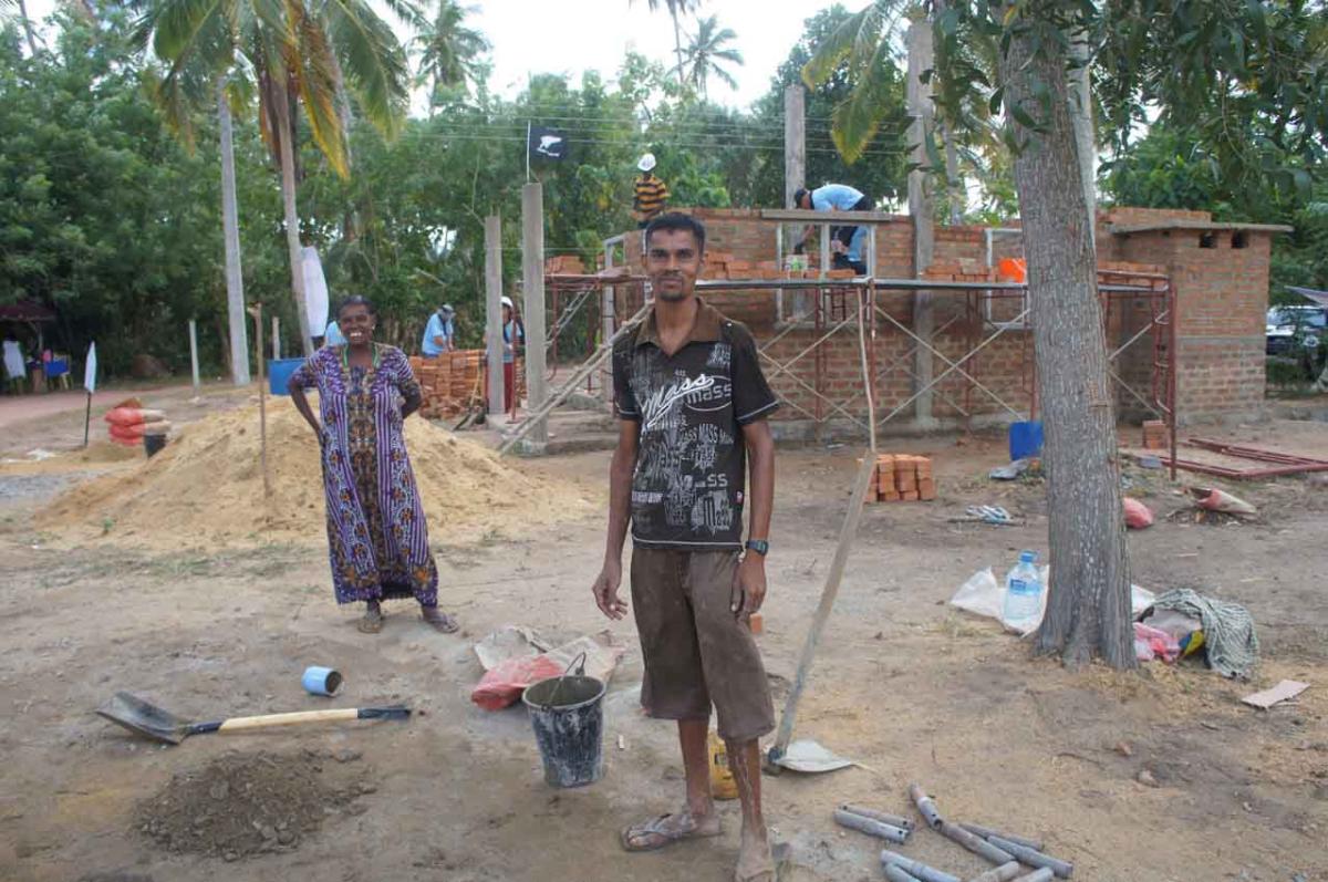There, on a block of land in Negombo, we joined them mixing cement, laying bricks, ferrying water from the hand-pumped wells, walking rugby field lengths to collect heavy wood piles and eating together in the shade.