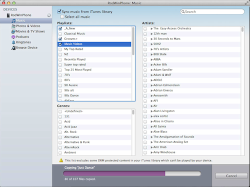 When I get home I download the Windows Phone app for OSX on my Mac Mini. I can see my iTunes collection. After sorting out a security issue I can sync photos, music and music videos. I wasn’t expecting that. TV and movies don’t come across, but of course I’d watch those on my iPad anyway.